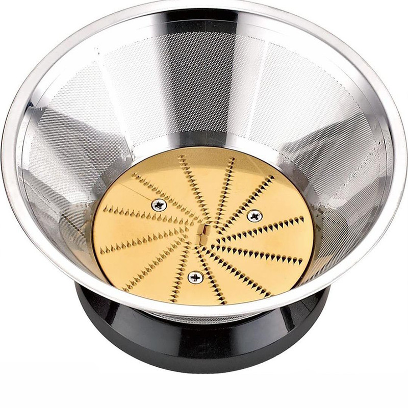 ظرفیت مخزن آبمیوه گیری 1 لیتر بوده و ظرفیت مخزن تفاله 1.8 لیتر است. تیغه های این دستگاه از جنس تیتانیوم است و بسیار تیز و برنده هستند.