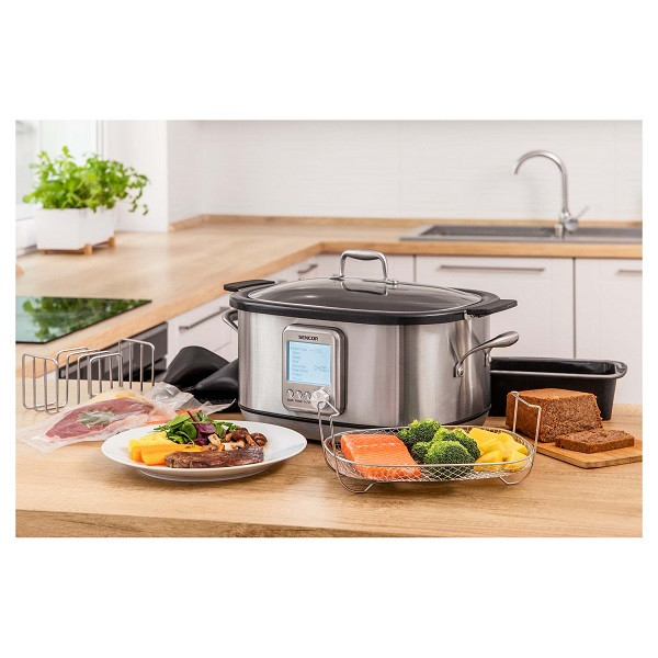 سایر توضیحات 8 برنامه خودکار حداکثر راحتی را تضمین می کند ،گزینه ای برای تنظیم دما و زمان پخت ،طراحی زیبا از فولاد ضد زنگ مناسب برای هر آشپزخانه، ظرفیت 7 لیتری برای کل خانواده بیش از حد کافی است ،لایه ای با تکنولوژی برای جلوگیری از چسبیدن غذا ،دیوار قابلمه از آلیاژ آلومینیوم به ضخامت 2.5 میلی متر ،قابل قرار دادن در یخچال ، قابل شستشو در ماشین ظرفشویی،مناسب برای : تفت دادن، اسلو کوک ، ماست ، برنج ، بخار ، گرم نگهدار ، سو وید ، خورشت .گزینه ای برای تنظیم دما و زمان پخت و پز ،تنظیم و فراموش کردن تایمر با اطمینان از حداکثر راحتی پخت به شما امکان می دهد دما و زمان پخت را تنظیم کنید ،پانل کنترل LCD دیجیتال راحت ترین تجربه پخت را فراهم می کند و کنترل را حتی با دست خیس امکان پذیر می کند .عملکرد گرم نگه داشتن به طور خودکار دمای ایده آل را حفظ می کند. غذای شما پس از اتمام فرآیند پخت ،قابلمه بخارپز بزرگ از جنس استنلس استیل برای پخت ماهی، پیراشکی و سبزیجات در بخارپز ، قابلمه بخارپز از فولاد ضد زنگ درجه یک ساخته شده است که طول عمر طولانی و مقاومت در برابر خوردگی را تضمین می کند .دسته مقاوم در برابر حرارت از هرگونه سوختگی جلوگیری می کند و امکان جابجایی غذا را فراهم می کند. اجاق گاز داغ در حین پخت و پز بدون نیاز به استفاده از دستکش فر ، درب ساخته شده از شیشه سخت شده طول عمر طولانی را تضمین می کند ، درب کاملاً مهر و موم شده به حفظ دمای ثابت کمک می کند ، قفسه آشپزی Sous-vide برای پخت و پز یکنواخت ، سینی پخت سیلیکونی ، دستکش فر مقاوم در برابر حرارت عملی ، طراحی ظریف استیل ضد زنگ مناسب برای هر آشپزخانه ،عالی برای پخت سوپ، گولش ، مربا، گوشت بره، گوشت گاو، سبزیجات، تخم مرغ و غیره پخت آهسته ، یک روش پخت جدید که تمام طعم ها را حفظ می کند ، نیازی به استفاده از روغن ندارد ، باعث صرفه جویی در زمان و هزینه می شود ، امکان پخت در بخار، پخت، سرخ کردن و تهیه گولش عالی را فراهم می کند ، امکان استفاده از قطعات ارزان‌تر گوشت برای تهیه غذاهای عالی را فراهم می‌کند ،از هر گونه سوختگی جلوگیری می کند زیرا به دمای پخت بالایی که در آن غذا می سوزد نیاز ندارد ،مصرف آب را کاهش می دهد زیرا غذا در یک قابلمه پخته می شود و 7 دلیل برای پخت و پز در آرام پز :سادگی - به سادگی تمام مواد را داخل قابلمه بریزید و اجازه دهید تمام کارها را انجام دهد. باعث صرفه جویی در مصرف آب و برق می شود – ساخت آلیاژ آلومینیوم ویژه اجاق گاز انتقال حرارت موثرتری را نسبت به دیگ های سرامیکی سنتی برای کاهش مصرف برق امکان پذیر می کند. صرفه جویی در زمان - به سادگی تمام مواد را در اجاق گاز قرار دهید و اجازه دهید تمام پخت و پز انجام شود. ، طعم‌های شدید و بدون از دست دادن ویتامین - برخلاف پخت‌های استاندارد، با پخت آهسته در دمای پایین، طعم و ویتامین‌ها حفظ می‌شوند. ، گوشت آبدار – هنگام پخت آهسته، آب آن داخل گوشت می ماند ،گزینه ای برای پخت برش های گوشتی سفت - برش های گوشتی سفت به طور سنتی در زمان پخت آهسته عالی هستند ، پخت و پز بدون چربی – به دلیل دمای پایین، روغن مورد نیاز نیست و بنابراین غذاها سبک تر و حتی طعم بهتری دارند.خروجی: 1250 وات
