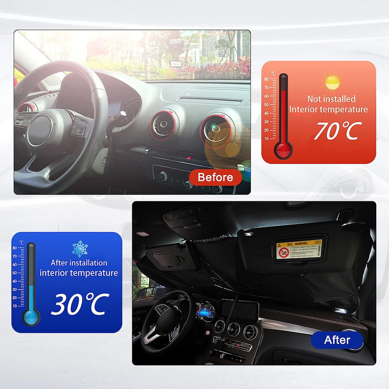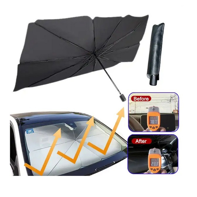 آفتابگیر خودرو سویتو مدل چتری (suitu) لوازم جانبی مناسبی برای خودرو شما است. این محصول از با کیفیت ترین مواد ساخته شده است که در برابر اشعه های خورشید محافظت می کند، که باعث می شود دمای داخل خودرو کمتر شود. طراحی سبک و انعطاف پذیر است که باعث افزایش طول عمر آن در مدت زمان طولانی استفاده می شود. ابعاد این آفتابگیر خودرو سویتو مدل چتری (suitu) برای همه خودرو ها مناسب میباشد و طوری میباشد که محصول کاملاً جا افتاده و وظیفه خود را انجام دهد. آفتابگیر خودرو سویتو مدل چتری (suitu) راه حل مناسبی برای کسانی است که می خواهند از مشکل گرم شدن بیش از حد خودروی خود در صورت ماندن در آفتاب جلوگیری کنند. این محصول بخش زیادی از نور خورشید را منعکس میکند و به لطف لایه تیتانیوم خود، عایق حرارتی را نیز تضمین می کند. آفتابگیر خودرو سویتو مدل چتری (suitu) به طور موثری اشعه ماوراء بنفش را مسدود می کند و از داخل وسیله نقلیه شما محافظت می کند. به لطف استفاده از دی اکسید تیتانیوم، چتر به طور موثری اشعه های مضر خورشید را منعکس می کند. علاوه بر این، روکش ویژه به شما اجازه می دهد تا دمای داخل خودرو را تا 30 درجه سانتی گراد کاهش دهید، به طور موثر انتقال گرما را کاهش داده و شرایط خنک دلپذیری را فراهم می کند. استفاده از آفتابگیر خودرو سویتو مدل چتری (suitu) بسیار آسان است - محصول مانند یک چتر معمولی باز می شود. بنابراین می توانید به راحتی و به سرعت از فضای داخلی خودرو خود در برابر گرمای بیش از حد محافظت کنید. مواد استفاده شده برای ساخت این محصول سازگار با محیط زیست، غیر سمی و بدون بو است. این چتر که از پلاستیک PET ساخته شده است، در برابر قرار گرفتن طولانی مدت در برابر نور خورشید مقاوم است.