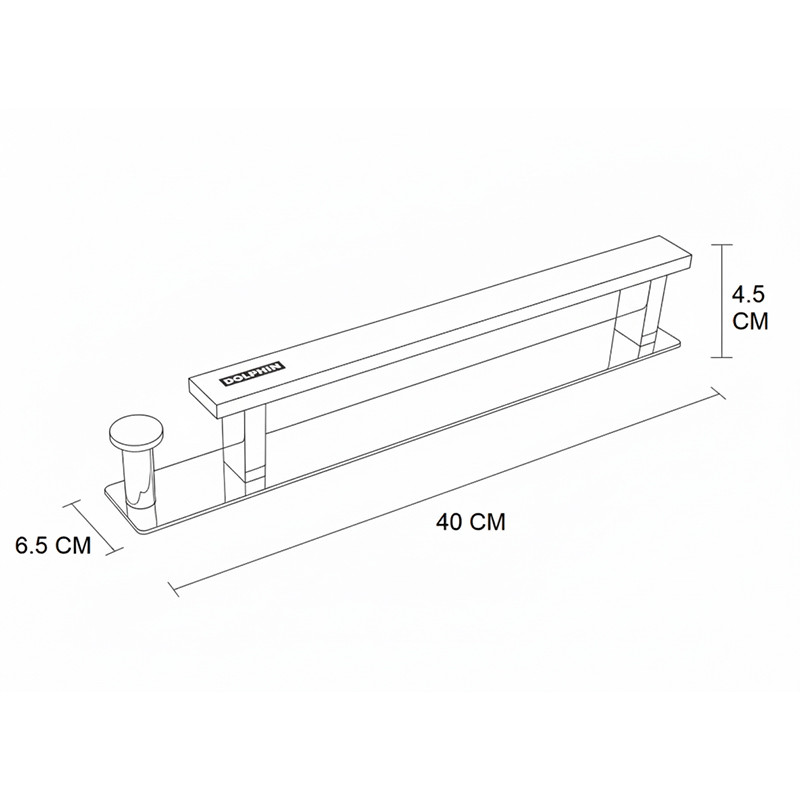 ابعاد این آویز برابر است با طول 40 سانتیمتر، ارتفاع 4.5 سانتیمتر و عمق 6.5 سانتیمتر.