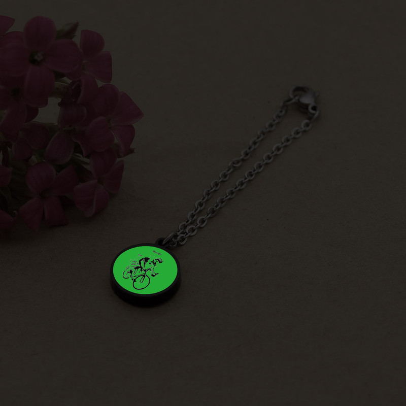 آویز ساعت به عنوان یک اکسسوری جذاب و زیبا برای تمام افراد و تمام سنین به شمار می آید. آویز ساعت ناکسیگو طرح دوچرخه سواری ساخته شده از جنس زنجیر استیل و پلاک اکریلیک است. این محصول به صورت شب تاب بوده و در صورتی که در معرض نور قرار بگیرد در تاریکی نور بسیار زیبا و چشم نوازی از خود منتشر می کند. کاملا ضد حساسیت بوده و رنگ ثابت دارد. طول زنجیر 11 سانتی متر و قطر آویز حدودا 1.5 سانتی متر می باشد. محصول با بسته بندی شیک و مناسب جهت هدیه ارائه می شود. توجه داشته باشید که جهت فعال شدن حالت شب تاب می بایست آویز ساعت را به مدت چند ثانیه زیر نور مستقیم قرار دهید.