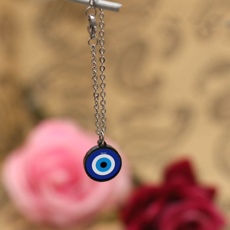 آویز ساعت به عنوان یک اکسسوری جذاب و زیبا برای تمام افراد و تمام سنین به شمار می آید. آویز ساعت ناکسیگو طرح چشم نظر ساخته شده از جنس زنجیر استیل و پلاک اکریلیک است. این محصول به صورت شب تاب بوده و در صورتی که در معرض نور قرار بگیرد در تاریکی نور بسیار زیبا و چشم نوازی از خود منتشر می کند. کاملا ضد حساسیت بوده و رنگ ثابت دارد. طول زنجیر 11 سانتی متر و قطر آویز حدودا 1.5 سانتی متر می باشد. محصول با بسته بندی شیک و مناسب جهت هدیه ارائه می شود. توجه داشته باشید که جهت فعال شدن حالت شب تاب می بایست آویز ساعت را به مدت چند ثانیه زیر نور مستقیم قرار دهید.