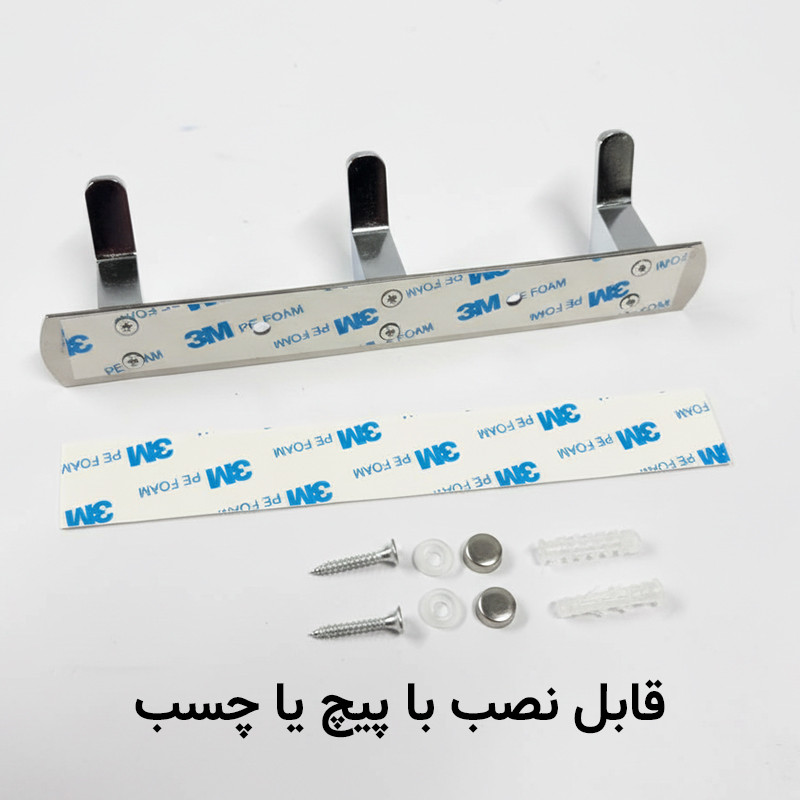 نصب آن بسیار آسان است و میتوانید به دلخواه خود از چسب دوطرفهی قوی 3M یا پیچ و رولپلاک استفاده کنید. طراحی سه شاخه، فضای کافی برای آویزان کردن لباس، حوله یا کیف فراهم میکند.