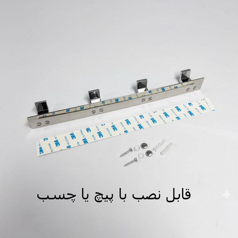 آویز دلفین مدل چهار شاخه با طراحی مدرن و کیفیت بالا، انتخابی کاربردی برای سرویس بهداشتی، آشپزخانه یا اتاق خواب است. این محصول از استیل ضد زنگ ساخته شده که در برابر رطوبت و زنگزدگی مقاومت بالایی دارد و برای استفاده در محیطهای مرطوب بسیار مناسب است. نصب این آویز به دو روش امکانپذیر است: با چسب ۳M قوی یا پیچ و رولپلاک (هر دو در بستهبندی موجود است)، بنابراین میتوانید بسته به نوع دیوار، روش نصب دلخواه خود را انتخاب کنید. آویز دلفین در دو رنگ طلایی و کروم عرضه میشود و با طول 34.5 سانتیمتر و ارتفاع 3.5 سانتیمتر، فضای کافی برای آویختن چندین حوله یا لباس را فراهم میکند.