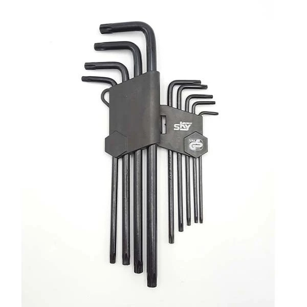 | سایر توضیحات | وزن 420 گرم تعداد 1 شماره آچار T-10 T-15 T-20 T-25 T-27 T-30 T-40 T-45 T-50 ویژگیهای آچار دسته بسیار بلند نوع آچار آلن جنس کالا کروم مولبیدن سایر توضیحات کیفیت فوق العاده بالا هر دو سر آچارها سوراخ دار |