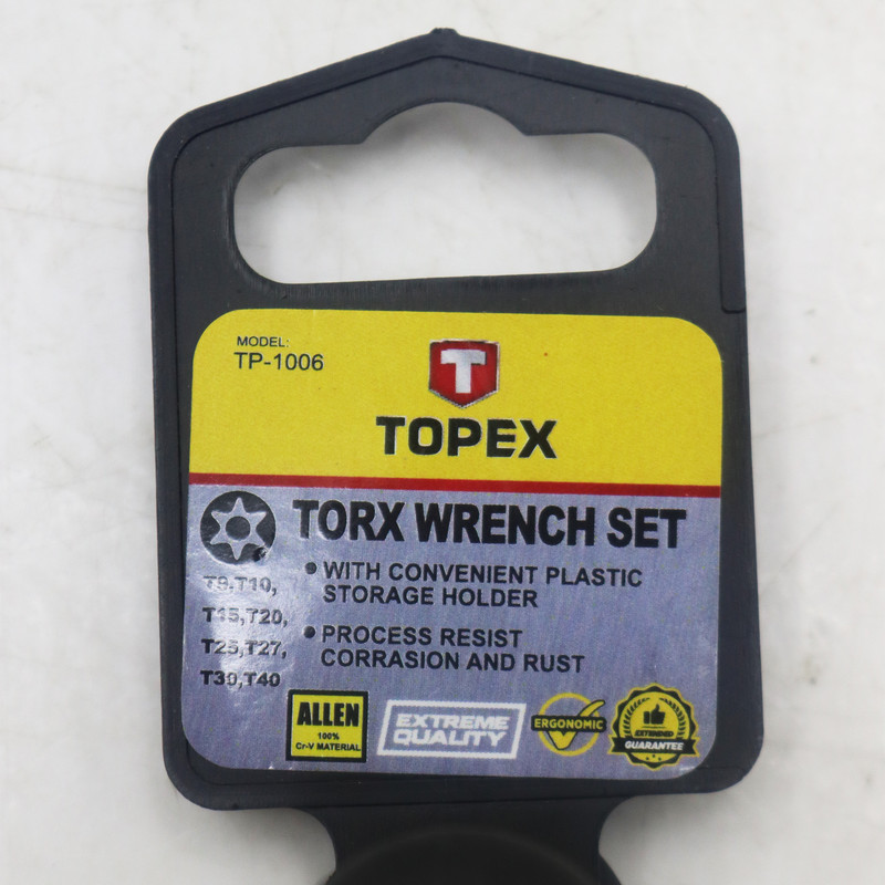 | سایر توضیحات | - آلن ستاره ای تاپکس مجموعه 8 عددی - در سایز : T9 - T10 - T15 - T20 - T25 - T27 - T30 - T40 - دارای جنس کروم وانادیوم با مقاومت بالا - کیفیت بالا |