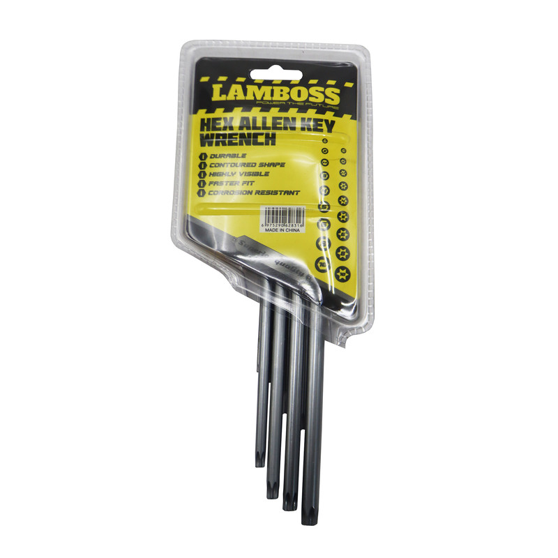 | سایر توضیحات | - آچار آلن ستاره ای بلند لامبوس مجموعه 9 عددی - سری ستاره ای سورخ دار - دارای ۹ عدد آچار آلن در سایز های ۱.۵ - ۲ - ۲.۵ - ۳ - ۴ - ۵ - ۶ - ۸ - ۱۰ میلی متر - جنس :کروم وانادیوم با مقاومت و کیفیت بالا - کیفیت بالا |
