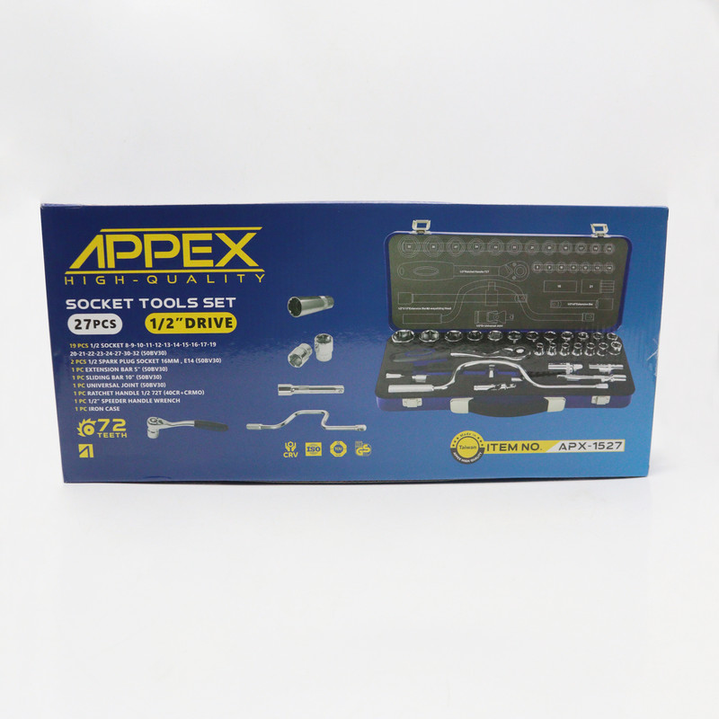 اگر قصد کاملکردن ابزارهای خود را دارید، میتوانید روی محصول فوق حساب کنید. این مجموعه 27 عددی و شامل انواع سریهای پیچگوشتی، بکس و آچار اتصال به آنهاست. با دراختیارداشتن این محصول میتوانید بسیاری از پیچ و مهرهها را باز و بسته کنید. شرکت APPEX که یکی از بهترین سازنده های جعبه بکس می باشد این مجموعه درون جعبهای پلاستیکی عرضه شده است. وزن کل این مجموعه 5.5 کیلوگرم و جابهجایی آن راحت است. این مجموعهی جمعوجور از کیفیت ساخت خوبی برخوردار است.