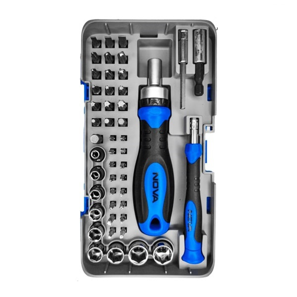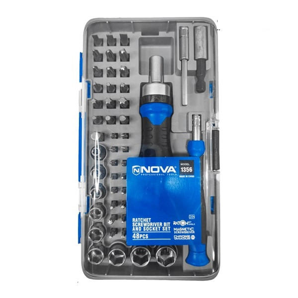 همچنین دسته پیچگوشتی جغجغهای این ست با 22 دندانه و قابلیت تنظیم در سه حالت، امکان تغییر زاویه و کنترل دقیقتر هنگام استفاده را فراهم میسازد. طراحی ارگونومیک و قطر بیشتر دسته به گونهای است که به کاربر کمک میکند تا با کمترین تلاش، بیشترین گشتاور را اعمال کند. ضامن و شفت نگهدارنده ساخته شده از آلیاژ روی و نوک پرداختشده و ماشینکاری شده بیتها نیز باعث میشود که پیچها به راحتی و با دقت بیشتری باز و بسته شوند. دستهی ضد لغزش با روکش TPR، ایمنی و راحتی کاربر را در استفادههای طولانی مدت تضمین میکند. تمامی قطعات در جعبهای مقاوم و طراحیشده از جنس PC، TPR و PP نگهداری میشوند که علاوه بر سازماندهی مناسب، از ابزارها در برابر ضربه و آسیب محافظت میکند. ست بیت و بکس 48 پارچه مدل 1356 نووا، گزینهای عالی برای حرفهایها و افراد علاقهمند به کارهای فنی است.