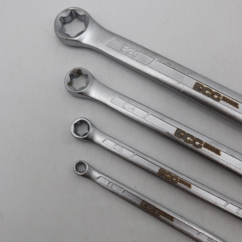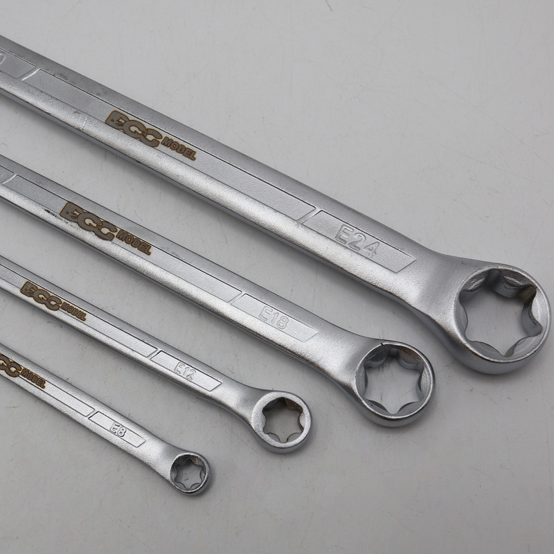 همانطور که ذکر شد، آچار E از جنس آلیاژ کروم-وانادیوم ساخته شده است. این آلیاژ برای ساخت ابزارهای مختلف دستی مورد استفاده قرار میگیرد. چرا که مقاومت بالایی در برابر ضربه، فشار و حرکات پیچشی و کششی دارد. آچارهای رینگی E به صورت کامل با پیچ و مهره درگیر میشوند. به همین علت است میتوانند دقیق تر و بهتر از آچار های تخت عمل کنند.