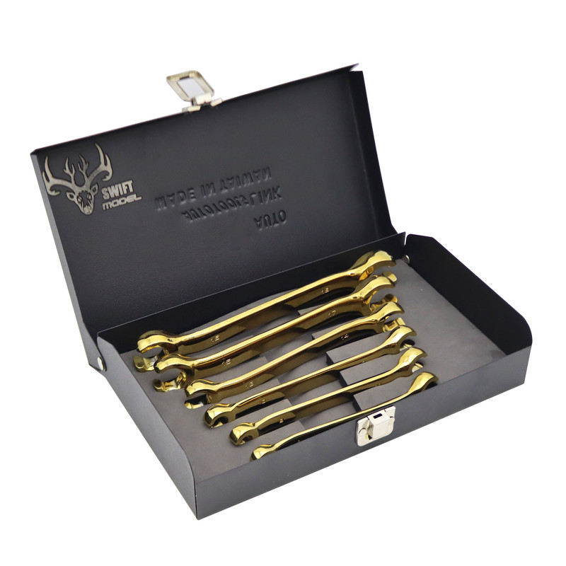 | سایر توضیحات | - مجموعه 6 عددی اچار دو سر رینگی چاکدار مدل سویفت - ساخت کشور تایوان - جنس فولاد حرارت دیده سخت کاری شده - دارای روکش استاتیک طلایی ضد خش بسیار با دوام - این اچار دو سر رینگی سری چاکدار مناسب برای مکانهای سخت و دشوار که اچار رینگ داخل ان نمیرود چاکدار بودن این اچار مناسب برای ان مکان ها می باشد - سایز اچار ها به ترتیب : 8-10 . 9-11 . 10-12 . 13-14 . 15-17 و 16-18 میلیمتر می باشد - سری فولادی ضد خوردگی و سایش - دارای جعبه فلزی قفل دار هر اچار منظم در جای خود |