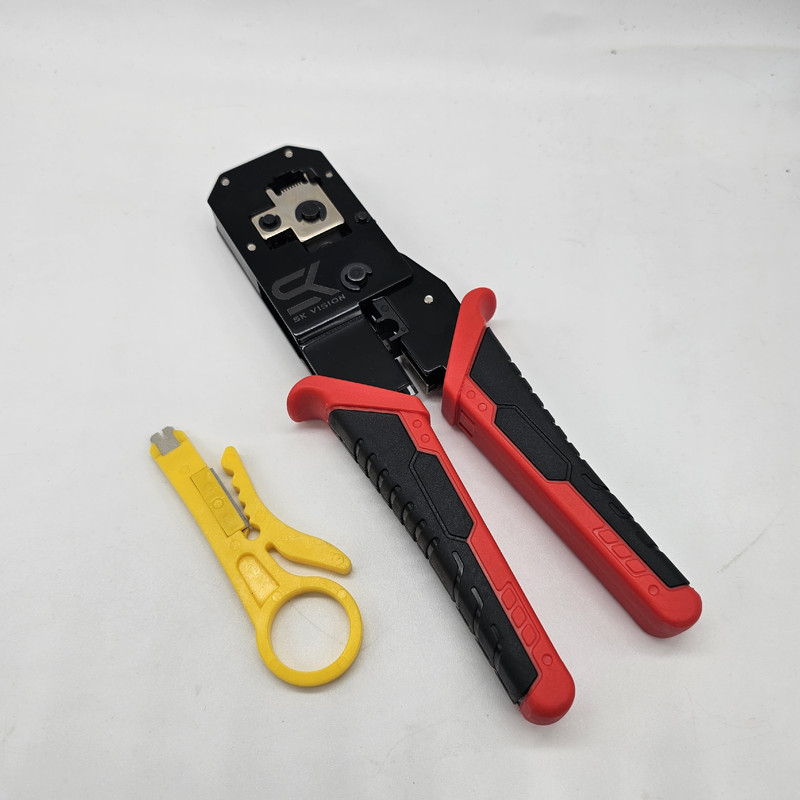 اچار سوکت زن اسکای ویژن w-318 یک آچار شبکه همه کاره است که توانایی سوکت زدن سوکت های RJ45 (برای شبکه)، RJ 11 (تلفن) را دارد. با استفاده از سیم لختکن تعبیه شده روی دسته این آچار میتوانید به راحتی سیمها و کابلها را لخت یا قطع کنید. این آچار از عهده لختکردن انواع سیمهای تخت (Flat) و گرد به راحتی برمیآید. همچنین یک سیم لخت کن دستی مجزا هم در بستهبندی آن وجود دارد. این آچار شبکه فوق العاده خوش دست است. شما به عنوان کاربر میتوانید با هردو دست با این آچار شبکه کار کنید. اگر قصد اجرای سیمکشی برای شبکه، خط تلفن یا دوربین مداربسته را دارید، حتما به یک آچار سوکتزن شبکه نیاز خواهید داشت