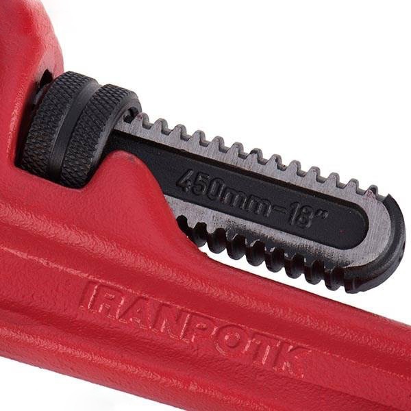آچار لوله گیر ایران پتک کد RSTV007-10 سایز 18 اینچ : آچار شلاقی (مدل آمریکایی ) ایران پتک سایز 18 اینچ : آچار لوله گیر ایران پتک 18 اینچی ازجمله ابزارهای دستی هستند که عمدتا جهت باز و بستن لوله ها و اتصالات مربوط نظیر پیج، مهره در صنایع ساختمان، کارگاهها و منازل مورد استفاده قرار می گیرند که از آن به عنوان آچار شلاقی نیز نام برده میشود.یکی از این نوع ابزارها، آچار لوله گیر ایران پتک است که با دستههایی از جنس چدن ریخته گری شده و فک های فولادی سخت کاری شده با قابلیت تعویض تحت استانداد ملی ایران به شماره 9221 در سایزهای متنوع ساخته شدهاندکه کیف ابزار به عنوان یک حامی قدیمی محصولات با کیفیت ایرانی انتخاب این محصول را به شما توصیه مینماید.