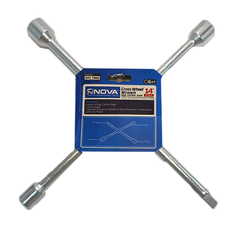 آچار چرخ نووا کد NTC-7800 سایز 14 اینچ : وقتی لاستیک خودرو پنچر میشود، علاوه بر جک و لاستیک زاپاس نیاز به آچار چرخ دارید تا مهرههای چرخ را باز کنید. اما استفاده از آچارهایی که به همراه جک در خودرو قرار دارد، نسبتا مشکل است. اکثر این آچار چرخها به شکل L ساختهشده و جنس ضعیفی دارند. آچار چرخهای شرکت نووا علاوه بر جنس مرغوب، از طراحی چهارپر بهره میبرد که استفاده از آن را آسانتر میکند. کسانی که با اینگونه آچار چرخ کار کرده باشند، سهولت و مصرف انرژی کمتر در باز کردن مهره با آن را تایید میکنند. این محصول دارای چهار سری است که 3 سر شامل سری بکس ششگوش با سایزهای 14، 19 و 21 میلیمتر و یک سر برای استفاده به عنوان آچار بکس با درایو 1/2 اینچ ساخته شده که مهمترین ویژگی این محصول به شمار میآید.دلیل در نظر گرفتن چهار سایز مختلف آچار در این محصول، تفاوت نیاز و استفاده از آن برای بیشتر خودروهای سواری است. آچار چرخ نووا باقابلیت تحمل فشار بسیار بالایی تولید میشود. برای استفاده از این وسیله، کافی است با قرار دادن سری مناسب روی مهره، میلهای که عمود بر مهره موردنظر قرارگرفته را بچرخانید. اگر میخواهید که نزدیکان شما برای تعویض خودرو انرژی کمتری را صرف کنند، تهیه و هدیه کردن این محصول به آنها را به شما پیشنهاد میکنیم.