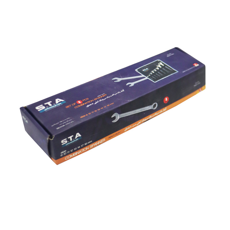 | سایر توضیحات | - آچار یکسر تخت یکسر رینگ اس تی ای مجموعه 8 عددی - در سایز های : 8 - 10 - 11 - 12 - 13 - 14 - 17 - 19 سانتی متر - ساخته شده فولاد کروم وانادیوم - سری هیا پولیش شده - دارای استاندارد DIN 3113A - دارای کیف برزنتی با کیفیت دوخت بالا |
