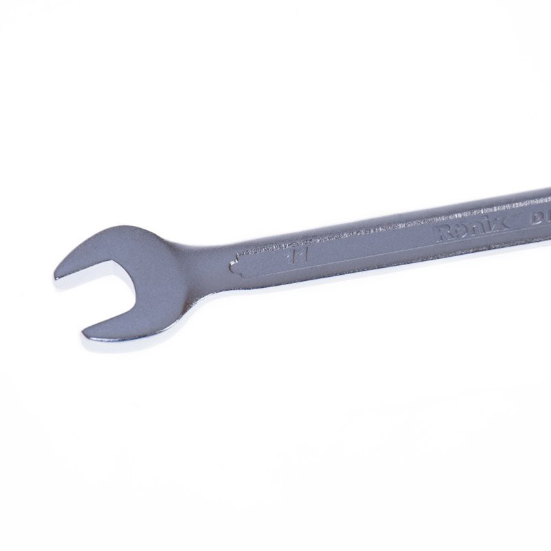 آچار تخت یکسر رینگی رونیکس مدل 2111، از جنس آلیاژ کروم-وانادیوم ساخته شده و به صورت کاملا باکیفیت با کروم آبکاری شده است و برای افزایش دوام و ارتقای خواص مکانیکی آن، تحت عملیات حرارتی و سختکاری قرار گرفته است. دهانهی این آچار یکسر رینگ رونیکس که 16 سانتی متر طول دارد، 11 میلیمتر است و با زاویهی 15 درجه ساخته شده است.