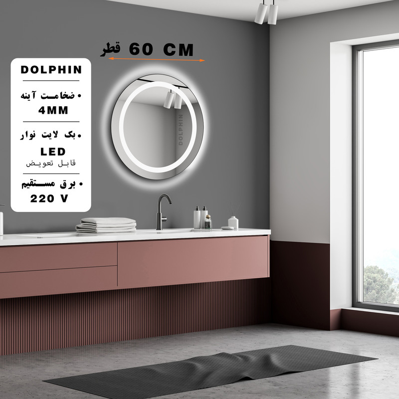 یکی از المان های تغییر در دکور تغییر نور محیط است. اما این کار همیشه میسر نیست و گاهی هزینه بالایی دارد. آینه دلفین مدل N-Q-60-round این امکان را در اختیار شما میگذارد. باکیفیت بودن شیشه آینه به طول عمر آن میافزاید و کیفیت آن را حفظ میکند. آینه به کار رفته از نوع سوپرکریستال با پوشش ۲ لایه است که مقاومت آینه را در برابر عوامل محیطی مثل رطوبت بالا میبرد. تکنولوژی فلوت (FLOAT) به کار رفته در تولید آینه باعث از بین رفتن هر گونه موج و همچنین بالا رفتن شفافیت آن شده است.