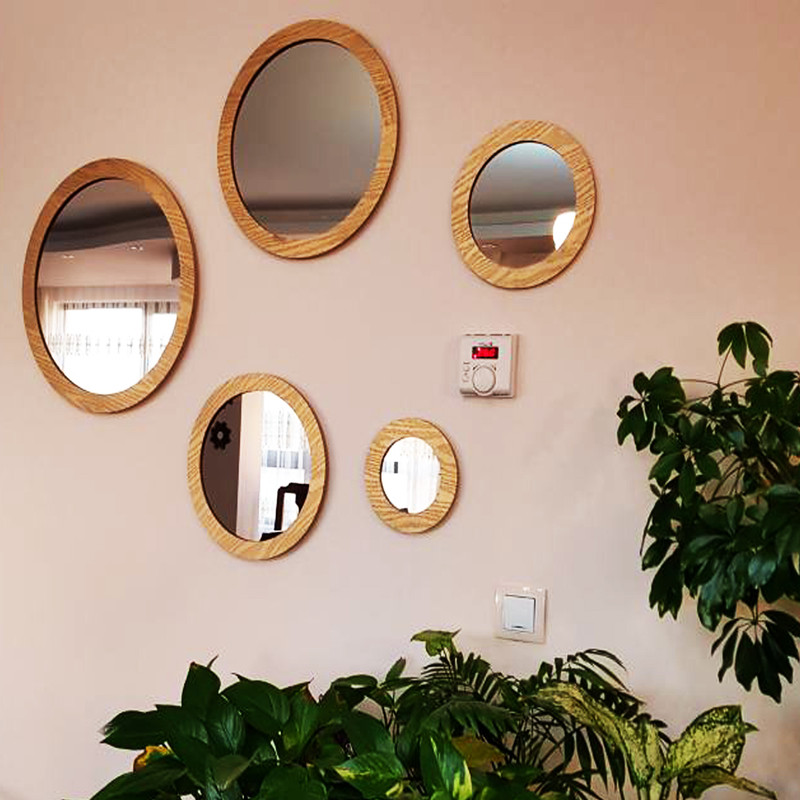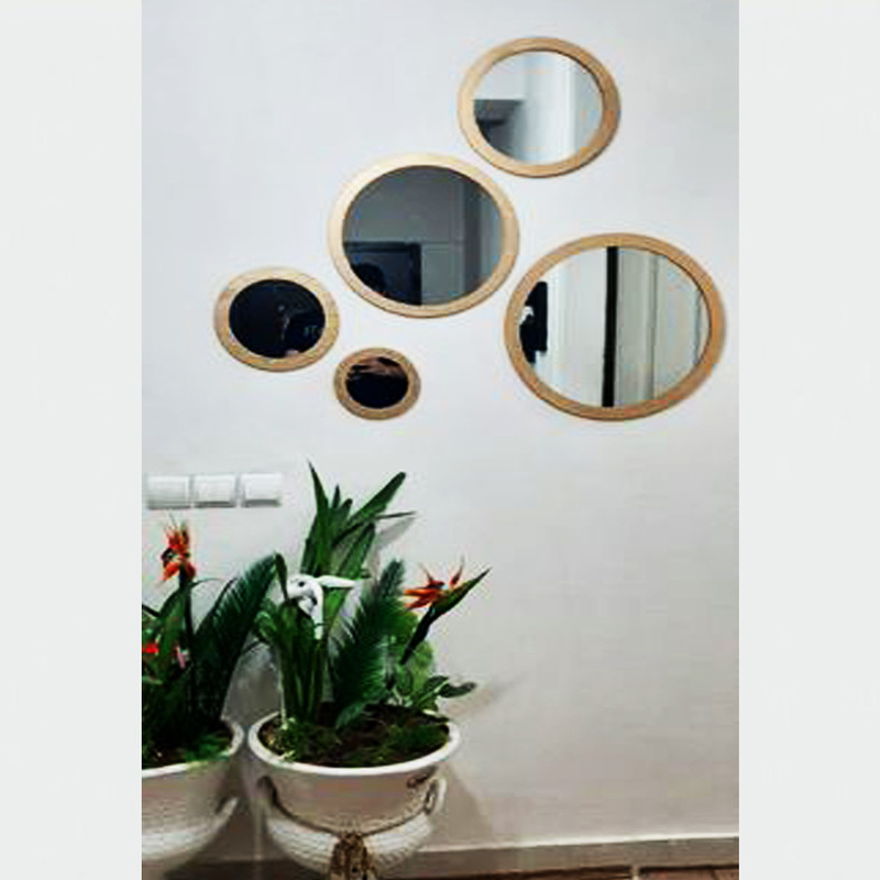 آینهها در دکوراسیون داخلی نقش مهمی دارند. از آنها به عنوان عناصر انرژی بخش در فضا یاد میشود و به فضای منزل یا محل کار آرامش, گستردگی و تازگی میبخشند. این آینه ها بصورت 5 عددی از سایز بزرگ به کوچک توسط خونه خاص طراحی و تولید شده است که میتوانید با توجه به فضا و سلیقه خودتان در ترکیب های متنوع روی دیوار نصب کنید. رنگ سفید قاب این محصول جنس پی وی سی و قابل شستشو است و سایر رنگها (نسکافه ای، قهوه ای و ...) از جنس mdf بوده، قابل شستشو نمی باشد ولی با توجه به رنگ دکور شما می تواند زیبا و در خور توجه باشد. محصول اصلی با ابعاد اصلی و کیفیت عالی فقط با برند و بسته بندی خونه خاص ارسال می شود.