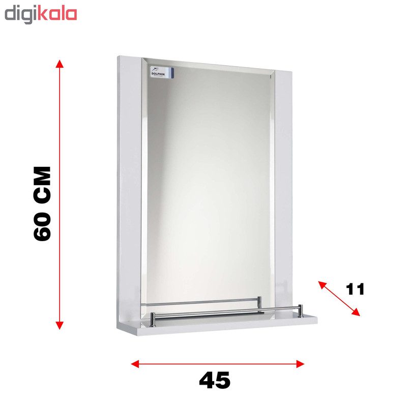 آینه حمام مدل «1010» مناسب برای محیط های رطوبتی با برند «دلفین» (DOLPHIN) محصولی کاملا ایرانی است. شیشه و بدنه این محصول از جنس pvc ضد آب و مناسب برای محیط‌های رطوبتی است. آینه به کار رفته از نوع سوپر کریستال با پوشش 2 لایه است که مقاومت آینه را در برابر عوامل محیطی مثل رطوبت بالا میبرد .تکنولوژی فلوت (FLOAT) به کار رفته در تولید آینه باعث از بین رفتن هر گونه موج و همچنین بالا رفتن شفافیت آن شده است. این محصول قابل شستشو و مناسب برای قرار گیری کنار دوش و دستشویی است. .