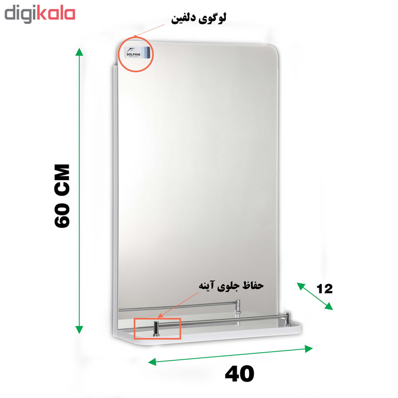 در طراحیهای روز دنیا استفاده از عناصر دکوراتیو که شکل ساده ای داشته و درنتیجه دیرتر از مد خارج شده و تکراری نشوند بسیار استفاده می شود. آینه دلفین مدل 1013 از سری آینههای frameless بوده که در اوج سادگی ، زیبایی خود را به رخ میکشد. شلف و چارچوب پی وی سی ضد آب این محصول را در برابر رطوبت بیمه میکند. لبه آینه با دستگاه نرم (لول) شده که علاوه بر برنده نبودن جلوه زیبایی به آینه دهد . آینه از نوع سوپر کریستال و با تکنولوژی فلوت ساختهشده که تصویر شفاف و بدون موج را ممکن میسازد.نصب آینه با 2 آویز که در پشت آینه تعبیه شده با 2 پیچ به سادگی انجام میشود