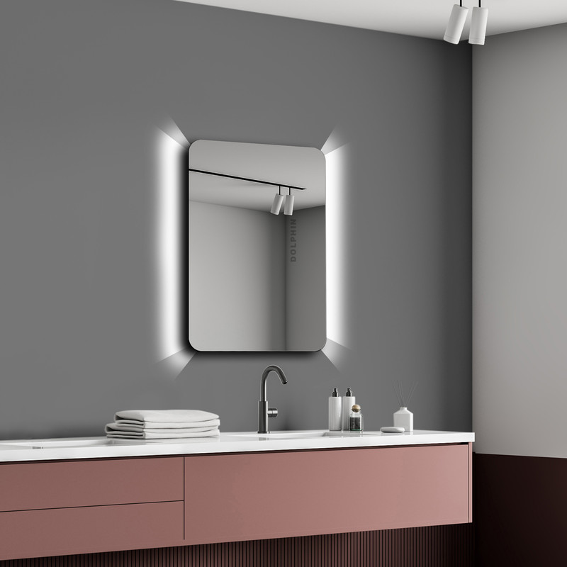 آینه نوری دلفین مدل 1081 استفاده از نور های مخفی در طراحی محیط ایجاد فضای آرام و دلنشین میکند.همواره استفاده از لوازم برقی در محیط های رطوبطی ایجاد نگرانی برای مصرف کننده میکند.از این رو به شما اطمینان داده میشود که تمام تلاش خود را برای عایق بندی این محصول نموده ایم (توجه:به هیچ عنوان آب را مستقیم به رو و پشت اینه نگیرید).آینه به کار رفته از بهترین نوع شیشه است که نداشتن زدگی و موج روی سطح آن بارها توسط تیم کنترل کیفی بازرسی میشود.نوار اس ام دی به کار رفته بسیار پر نور بوده و عمر بسیار طولانی دارد و میتوانید ساعت ها بدون نگرانی از داغ شدن آن را روشن بگذارید. برای اتصال نوار نورانی میتوانید از 2 شاخه یا ترمینال همراه کالا استفاده نمایید.