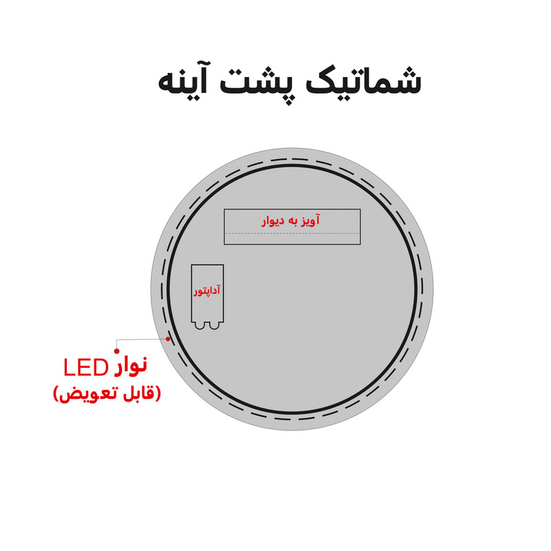 استفاده از نور های مخفی در طراحی محیط ایجاد فضای آرام و دلنشین میکند.همواره استفاده از لوازم برقی در محیط های رطوبتی ایجاد نگرانی برای مصرف کننده میکند.از این رو به شما اطمینان داده میشود که تمام تلاش خود را برای عایق بندی این محصول نموده ایم (توجه:به هیچ عنوان آب را مستقیم به رو و پشت اینه نگیرید).آینه به کار رفته از بهترین نوع شیشه است که نداشتن زدگی و موج روی سطح آن بارها توسط تیم کنترل کیفی بازرسی میشود.نوار اس ام دی به کار رفته بسیار پر نور بوده و عمر بسیار طولانی دارد و میتوانید ساعت ها بدون نگرانی از داغ شدن آن را روشن بگذارید. برای اتصال نوار نورانی میتوانید از 2 شاخه یا ترمینال همراه کالا استفاده نمایید. اتصالات نصب به دیوار طوری طراحی شده که به صورت افقی و عمودی آینه قابل نصب است.