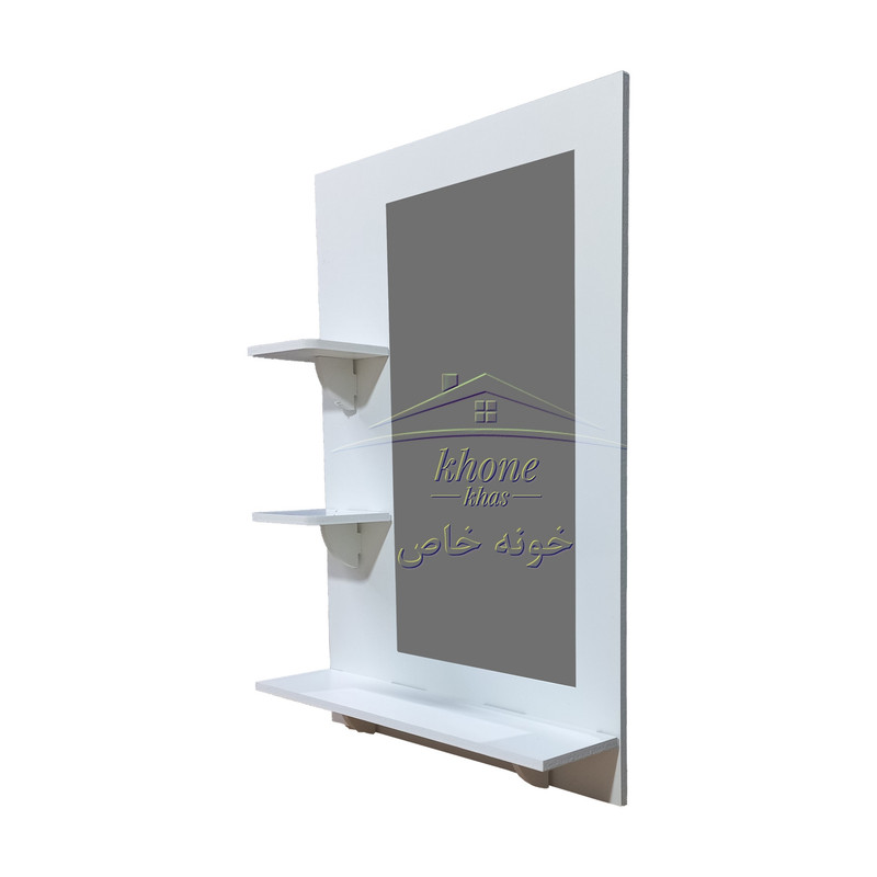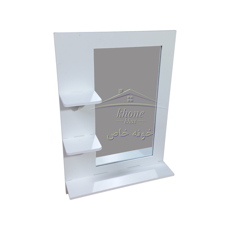 آینه سرویس بهداشتی مدل کلاسیک محصول ایرانی با طراحی و تولید خونه خاص بوده که از ورق درجه یک پی وی سی تهیه شده و مناسب سرویس بهداشتی، اتاق خواب، آرایشگاهها و ... می باشد این محصول دارای یک عدد طاقچه بزرگ و دو عدد طاقچه کوچک مناسب جای دکوری، گلدان، لیوان، جاصابون و ... می باشد و طراحی کامل و در عین حال ساده و شیک دارد که می تواند جلوه زیبایی به سرویس بهداشتی بدهد. جنس محصول کاملا قابل شستشو است و با خیال راحت در سرویس بهداشتی، مکان های مرطوب و حتی در تماس مسقیم با آب قابل استفاده می باشد و به هیچ عنوان خراب و پوسته پوسته نمی شود. طرح محصول طرح ایکیا بوده و ساده، شیک و پرطرفدار است. این محصول بصورت تک جعبه در کارتن خونه خاص تولید و ارسال می شود.