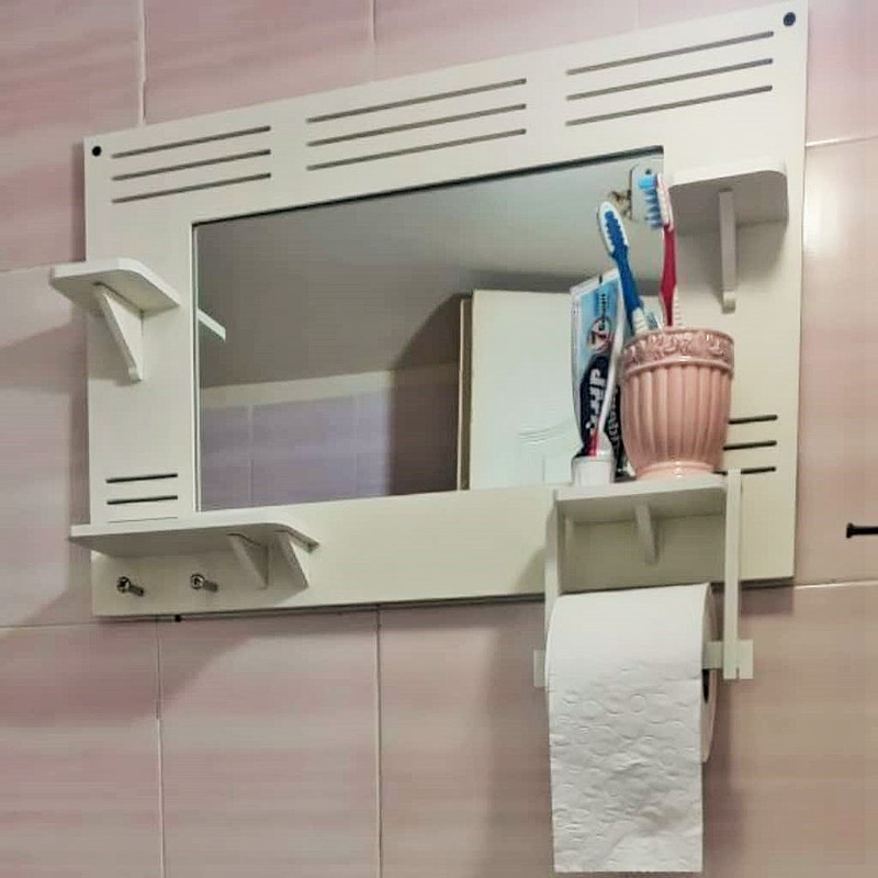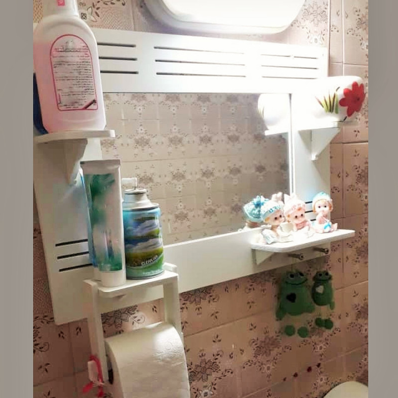 آینه سرویس بهداشتی مدل خطی محصول ایرانی با طراحی و تولید خونه خاص بوده که از ورق درجه یک پی وی سی تهیه شده و مناسب سرویس بهداشتی، اتاق خواب، آرایشگاهها و ... می باشد این محصول دارای جای دستمال کاغذی رولی یا حوله، دو عدد آویز استیل، چهار عدد طاقچه مناسب جای دکوری، گلدان، لیوان، جاصابون و ... می باشد و طراحی کامل و در عین حال ساده و شیک دارد که می تواند جلوه زیبایی به سرویس بهداشتی بدهد. جنس محصول کاملا قابل شستشو است و با خیال راحت در سرویس بهداشتی، مکان های مرطوب و حتی در تماس مسقیم با آب قابل استفاده می باشد و به هیچ عنوان خراب و پوسته پوسته نمی شود. طرح محصول طرح ایکیا بوده و ساده، شیک و پرطرفدار است. این محصول بصورت تک جعبه در کارتن خونه خاص تولید و ارسال می شود.