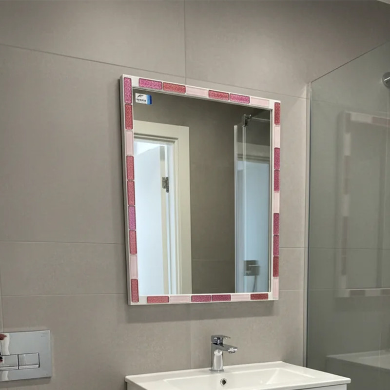 آینه سرویس بهداشتی دلفین مدل 1076-P با قاب زیبا و براق از جنس PVC مقاوم در برابر رطوبت، ترکیبی از ظرافت و دوام را در فضای سرویس بهداشتی شما به نمایش میگذارد. قاب این آینه با سنگ های مستطیلی در رنگهای صورتی، رزگلد و بژ تزئین شده که در نور جلوهای ملایم و درخشان ایجاد میکنند.