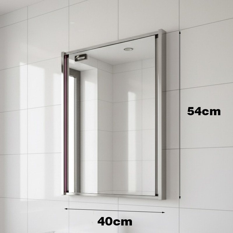 ابعاد آینه ۴۰ سانتیمتر عرض و ۵۴ سانتیمتر ارتفاع دارد و برای نصب در بالای روشویی یا روی دیوار سرویس بهداشتی بسیار مناسب است.