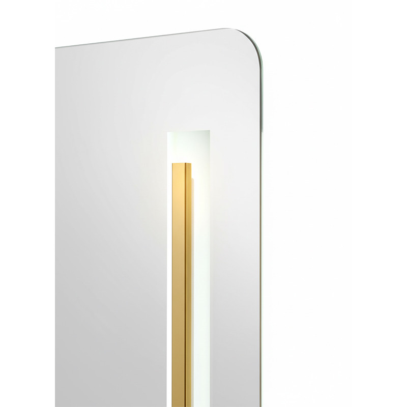 آینه از نوع دو لایه جیوهکاری شده فوقشفاف است و با تکنیک سندبلاست و استفاده از ورق استیل ضد زنگ طلایی در قسمتهای تزئینی، ترکیبی از زیبایی و دوام را ارائه میدهد.