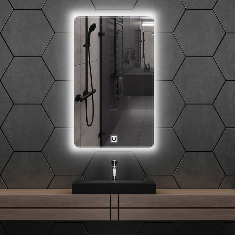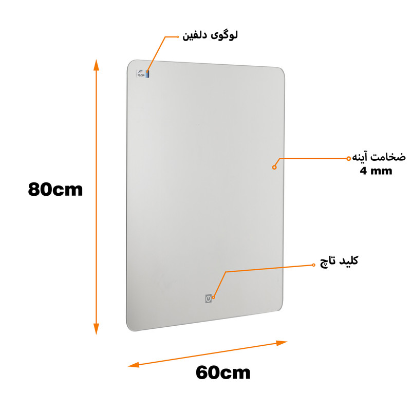 این محصول در دور رنگ نوری مهتابی و آفتابی قابل انتخاب میباشد. سنسور تاچ مونتاژ شده روی آینه بسیار حساسیت بالایی دارد و بهمحض برخورد دست با آن روشن و خاموش میشود. نور آبیرنگی هنگام خاموش شدن نوار ال دی دور سنسور روشن میشود که علاوه بر زیبایی، هنگام خاموش بودن محیط پیداکردن کلید را سادهتر مینماید. شیشه بهکاررفته در ساخت آیینه دارای ضخامت 4 میلیمتر بوده و از نوع سوپر کریستال میباشد. همچنین آینه با تکنولوژی فلوت تولیدشده که هیچ موج و زدگی را در آن پیدا نخواهید کرد و درنهایت با دولایه رنگ جیوه پشت آینه پوشیده شده تا در محیطهای رطوبتی مقاومت بیشتری داشته باشد. نصب اینه بوسیله پیچ و رولپلاک همراه کالا انجام میشود. یک 2 شاخه و یک ترمینال به همراه سیم اضافه همراه کالا قرار داده شده که مصرف کننده بتواند هم بصورت مستقیم چراغ آینه را به 2 شاخه وصل کند ویا به سیم بالای دستشویی متصل کد. این محصول برای استفاده در حمام و دستشویی، در اتاق ها بصورت آینه دکوراتیو و همچنین ارایشگاهها پیشنهاد میشود.