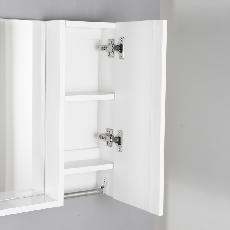 آینه و باکس دلفین کد 1053-50. این محصول ساخته شده از جنس پی ویسی و ضدآب است. طبقات بیرونی مناسب برای قرار دادن لوازم از جمله ادکلن،لوازم دکوری و آرایشی است. کابینت کنار آینه سایز و فضای مناسب برای استفاده را مهیا نموده است این محصول باید توسط پیچ و رولپلاک به دیوار نصب شود که متعلقات نصب همراه کالا ارسال می شود. آینهی بهکاررفته از نوع درجه یک سوپر کریستال بوده که پشت آینه نقره اندود شده است. تراش یک سانتیمتری دور آینه باعث زیبایی و استحکام بیشتر لبه هاست. لولای کابین از نوع آرام بند بوده و استحکام طبقات برای قرار دادن وزن های متعارف قابلقبول است.