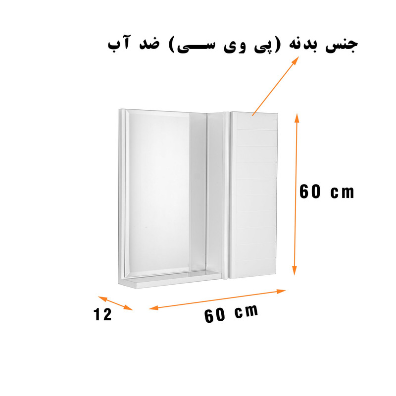 آینه و باکس دلفین کد 1053. این محصول ساخته شده از جنس پی ویسی و ضدآب است. طبقات بیرونی مناسب برای قرار دادن لوازم از جمله ادکلن،لوازم دکوری و آرایشی است. کابینت کنار آینه سایز و فضای مناسب برای استفاده را مهیا نموده است این محصول باید توسط پیچ و رولپلاک به دیوار نصب شود که متعلقات نصب همراه کالا ارسال می شود. آینهی بهکاررفته از نوع درجه یک سوپر کریستال بوده که پشت آینه نقره اندود شده است. تراش یک سانتیمتری دور آینه باعث زیبایی و استحکام بیشتر لبه هاست. لولای کابین از نوع آرام بند بوده و استحکام طبقات برای قرار دادن وزن های متعارف قابلقبول است.