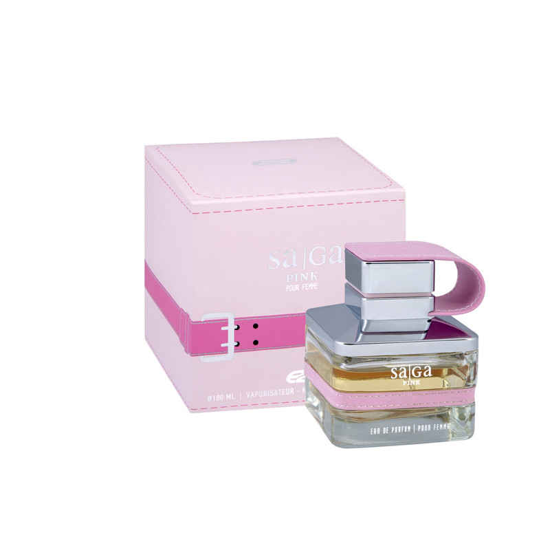 برند EA یکی از محصولات عطر عمادآرا است که به طور تخصصی به تولید عطرهای منحصر به فرد با رایحه های محبوب و معروف جهان کرده است.پرفیوم زنانه Saga Pink رایحه ای گرم و شیرین با نت هایی خوراکی داشته که می تواند انتخابی مناسب برای جوانان مشکل پسند به شمار بیاید. رایحه ی دلنشین و زیبای Saga Pink با نت هایی چون پاتچولی، وانیل، چوب درخت صندل و مشک آغاز می گردد و یک شروع کاملا شیرین با ترکیبی پیچیده و مدرن را به همراه دارد. عطر گل هایی چون زنبق و رز و پس از آن رایحه ی روح نواز پرتقال و کشمش، نت های میانی و پایه ی ادکلن ساگا پینک را تشکیل می دهند که اندکی از شیرینی آغازین رایحه کاسته و حسی سرشار از طراوت را به گرمای رایحه هدیه می دهد . عطر Saga Pink با غلظت ادوپرفیوم تهیه گردیده و می تواند برای فصول سرد و همچنین در مجالس و میهمانی های شبانه نیز مورد استفاده قرار گیرد.