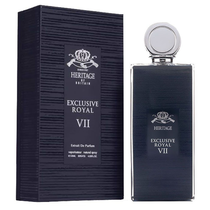ادوپرفیوم اکسکلوسیو رویال هفت مردانه از برند هریتیج، هریتیج Heritage دارای طبع گرم و شیرین است. از این محصول میتوان برای خوشبو ماندن در طول روز و یا مهمانی ها در چهار فصل سال استفاده نمود که قدرت پخش بو و ماندگاری بالایی دارد. این عطر کیفیت بالایی دارد.