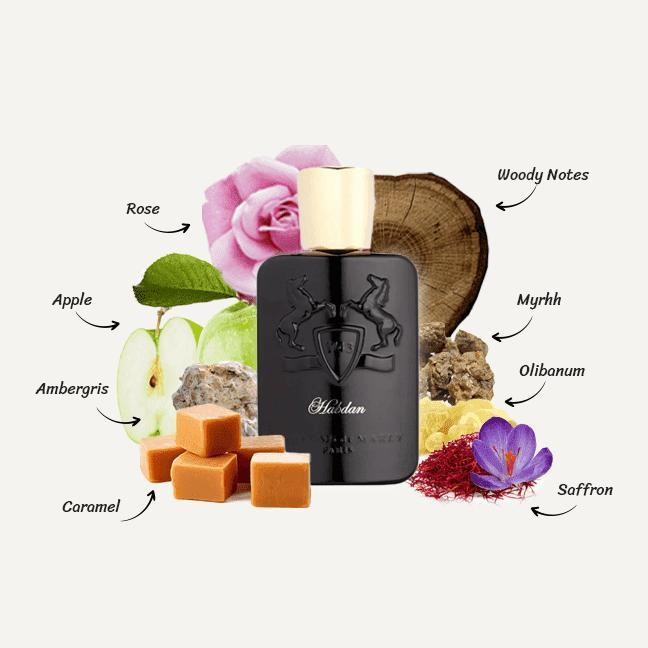 در سال 2013 یکی از بهترین عطرهای مردانه و زنانهی «پرفیوم دو مارلی» (Parfums de Marly) به بازار معرفی شده است. این ادو پرفیوم «Habdan» نام دارد. این عطر حال و هوای ملایمی دارد و برای تمامی فصول سال پیشنهاد میشود. بوی شرقی و وانیلی این عطر توجه اطرافیان را بهسوی شما منحرف میکند. در کل Habdan کمی بوی ترش و بالزامیکی دارد و خنکی صبح را برای شما تداعی میکند. بطری این عطر خیلی شیک و سنگین ساخته شده است. شیشه به رنگ سیاه است اما برعکس آنچه معمولاً انتظار میرود، Habdan بوی ملایم و نهچندان تندی دارد. روی شیشه نام Habdan با رنگ طلایی خودنمایی میکند. روی بطری نشان تجاری پرفیوم دو مارلی به شکل برجسته حک شده است. در بطری به رنگ طلایی بوده و با نوشتههای طلایی روی شیشه هماهنگی مناسبی ایجاد میکند. وقتیکه پرفیوم دو مارلی Habdan را روی پوست و محل نبضتان اسپری کنید، خیلی زود متوجه بوی زعفران و صمغ خواهید شد. این نت شیرین و طبیعی، شادی و تازگی را در شما ایجاد میکند. پس از مدتی این نت آغازی جای خود را به نتهای میانی میدهد. نت میانی از سیب، نتهای چوبی و گل رز ساخته شده است. بوی گل رز اعتمادبهنفس و انرژی مثبت زیادی را به شما منتقل میکند. پس از مدتی طولانی، نتهای پایانی از راه رسیده و جای نتهای میانی را میگیرند. این نتها از عنبر، کارامل و صمغ Myrrh ساخته شدهاند. بوی این ترکیب دوگانهی شیرین و تا حدودی گرم، انرژی و هیجان فراوانی را در شما ایجاد میکند. خرید عطر پرفیوم دو مارلی Habdan با توجه به پخش بوی قوی، ماندگاری بالا، برند شناختهشده، قابلیت استفاده برای آقایان و بانوان و حجم 100 میلیلیتریاش برای شما و کسی که این عطر را از شما هدیه میگیرد، بسیار لذتبخش خواهد بود.