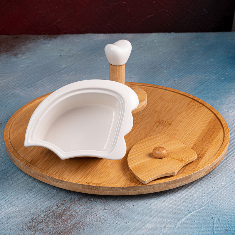 این سرویس شامل 5 عدد کاسه سرامیکی لعاب خورده ک قابل شسشتو با ماشین ظرفشویی به همراه 5 درب و یک عدد سینی پایه چوبی بامبو می باشد این ظروف علاوه بر برخورداری از ظاهری زیبا و مدرن انتخاب مناسبی برای سرو مواد خوراکی و پذیرایی محسوب می شوند. از سوی دیگر وزن بسیار سبک ظروف بامبو می تواند مزیتی مهم شمرده شود و شما را از زحمات اضافی معاف کند.