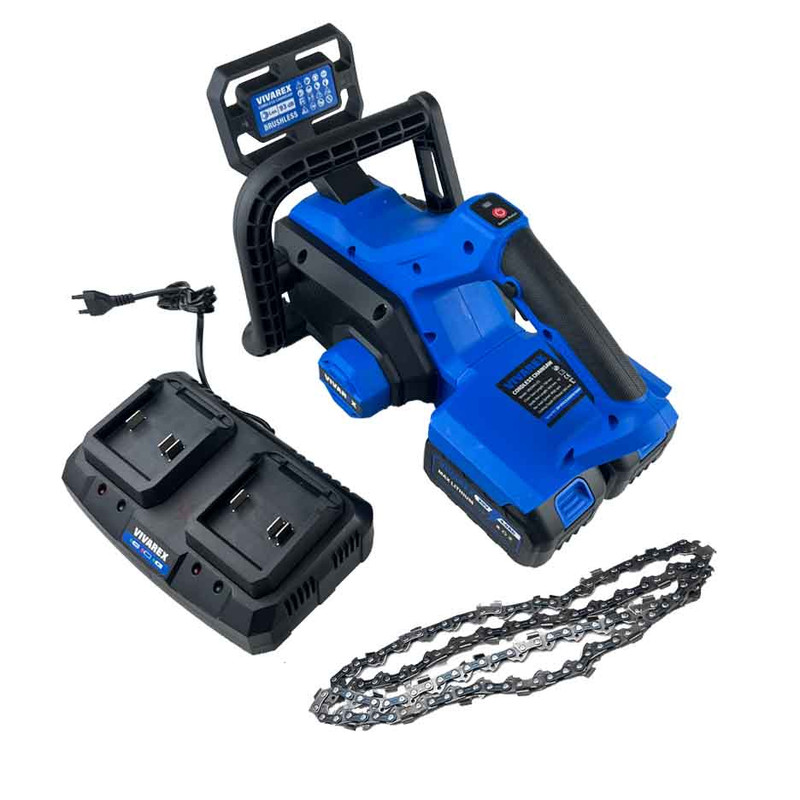 اره زنجیری شارژی 16 اینچ ویوارکس مدل VR2016V-CS یکی از ابزارهای قدرتمند و کارآمد برای برش چوب و انجام امور باغبانی و نجاری سبک تا نیمه‌سنگین است. این اره با طراحی ارگونومیک و استفاده از باتری لیتیومی پرقدرت، امکان استفاده آسان در فضاهای باز و بدون نیاز به برق شهری را فراهم می‌کند. استفاده از موتور براشلس در این اره، علاوه بر افزایش طول عمر، باعث کاهش اصطکاک و مصرف انرژی کمتر می‌شود که این امر موجب بهبود عملکرد و کارایی ابزار در طول زمان می‌گردد. این ابزار به‌ویژه برای کسانی که به دنبال یک اره زنجیری سبک و بسیار قدرتمند برای برش‌های دقیق میخواهند یک وسیله فوق العاده کاربردی می‌باشد. باید بگوییم که این نوع اره به عنوان یک ابزار برش قدرتمند، جهت برش و بریدن انواع مواد مختلف درختان، گیاهان، چوب، الوار، تخته و غیره استفاده می‌شود.