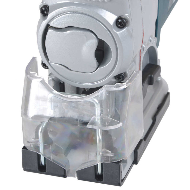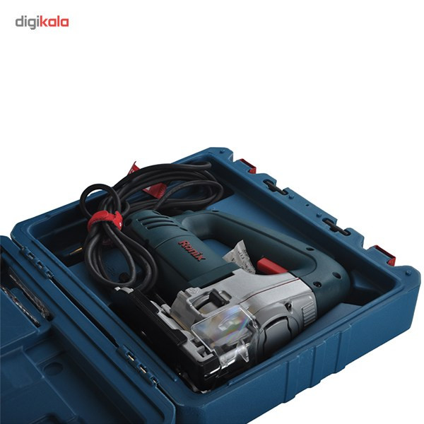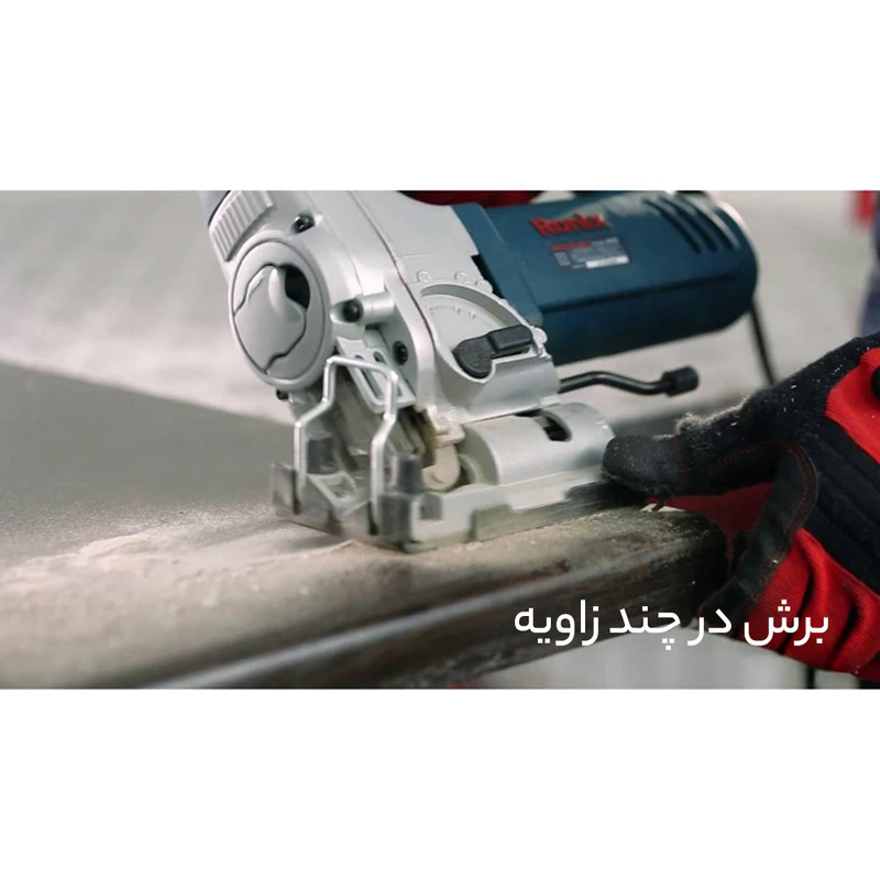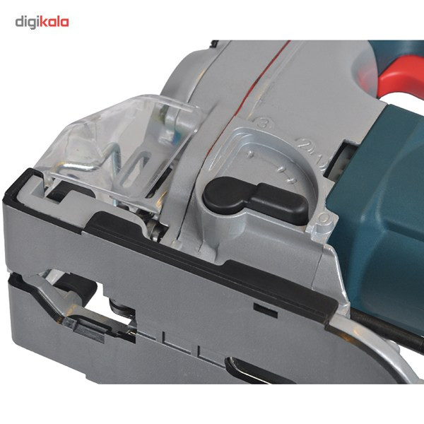 | سایر توضیحات | - قابلیت مکش گرد و غبار حاصل از برش - دارای دیمر جهت تنظیم ولتاژ و سرعت برش - گیربکس و موتور قوی و صلب - قابلیت تنظیم سرعت در شش حالت بر اساس سختی نوع چوب تحت برش - دارای کلید چهار زمانه جهت حرکت پاندولی تیغه - تنظیم سریع نقاله برای برشهای زاویهای - قابلیت برش زاویه تا 45 درجه از دو طرف چپ و راست - طراحی ارگونومیکی دسته برای استفاده آسان - تعویض تیغه بدون نیاز به ابزار |