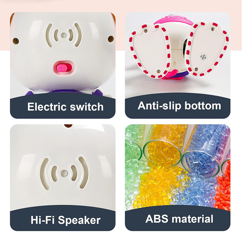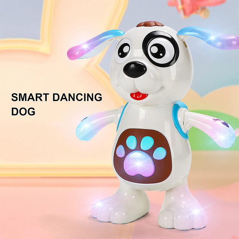 اسباب بازی سگ رقاص دارای قابلیت راه رفتن رقصیدن و 4نوع حالت موزیکال، همراه چراغ های جذاب در گوش ها و دستان بدن خود می‌باشد که فضایی شاد رو برای کودک به ارمغان میاورد. سگ رقاص در دسته اسباب بازی های سرگرمی جنبشی و آموزشی قرار دارد و به فرزند شما در راه رفتن یا در چهار دست پا رفتن کمک میکند. متریال ABS ( آنتی باکتریال و ضد حساسیت مناسب برای کودکان )