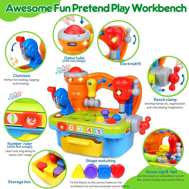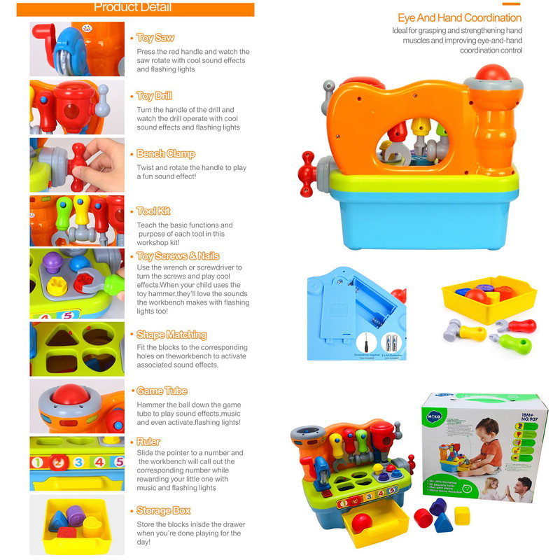 | سایر توضیحات | موزیکال.(دارای 7 آهنگ) دارای چراغ چشمک زن. استفاده از رنگهای جذاب و زیبا در طراحی محصول. کودک می تواند اشکال را در جای خود قرار دهد و پیچ ها را با ابزار مناسب سفت کند. ایمن برای بازی کودکان (لبه های تیز ندارد و قابل بلعیده شدن نیست) بازی با این محصول باعث: تقویت حس لامسه بهبود مهارت کار با دست و انگشتان آشنایی با ابزارآلات آشنایی با اشکال مختلف آشنایی با رنگ ها هماهنگی دست و چشم و تقویت حس خلاقیت کودک خواهد شد. |