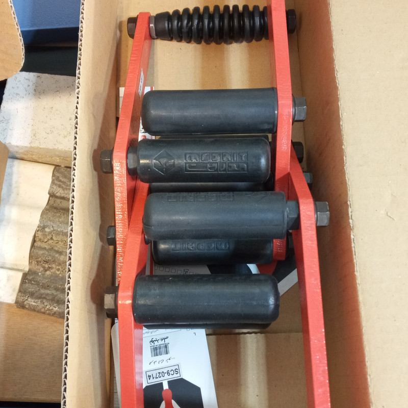 این ابزار یکی از کاربردی ترین ابزارها برای جا به جایی اسلب های سنگی و چوبی و فلزی سنگین است. ساختار اسلب گیر ساده است اما این توانایی را به حمل کننده های اسلب مدهد که به راحتی ورق های سنگین با حداکثر ضخامت 60 میلی متر را جا به جا کنند. چهار لقمه لاستیکی با مغزی فولادی از دو طرف قطعات سنگی را در بر می گیرند. لاستیکی بودن این لقمه ها مانع از ایجاد اسیب به اسلب میشود اساس کار اسلب گیر به صورت جفت است و همزمان چهار اپراتور باید برای حمل همکاری کنند.