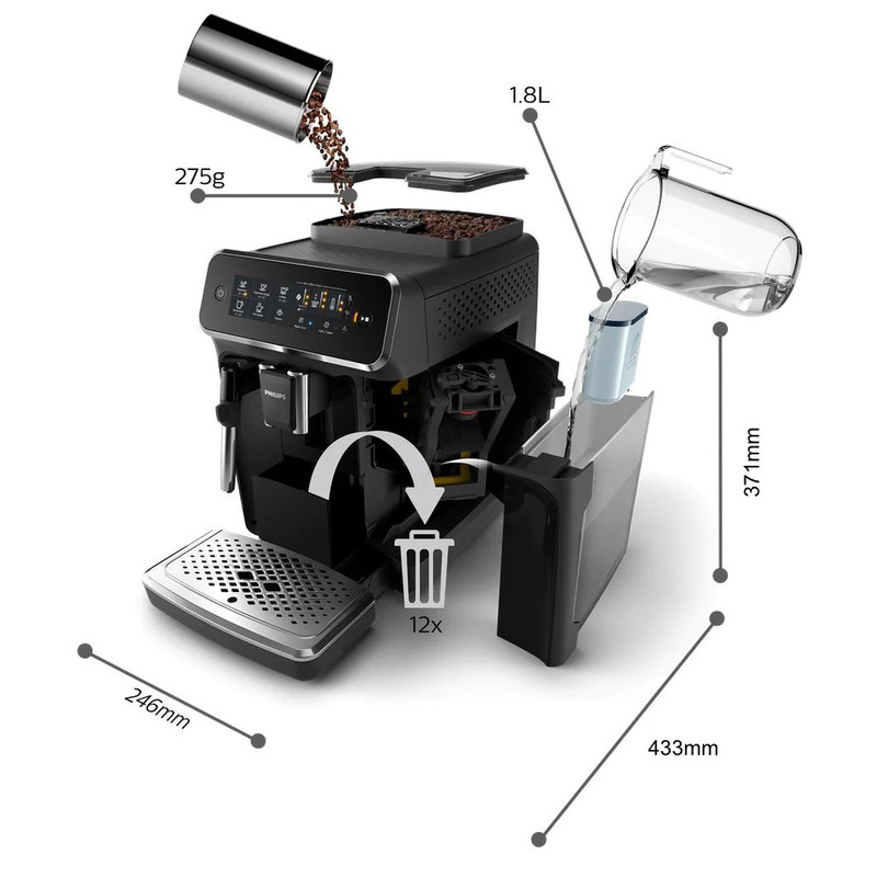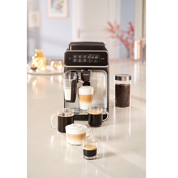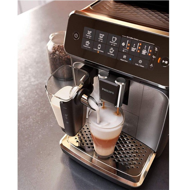 به لطف سیستم LatteGo روی قهوه خود را یک لایه ابریشمی از کف شیر بریزید. LatteGo شیر و هوا را با سرعت زیاد در محفظه دایره ای مخلوط می کند، سپس یک لایه خامه ای از کف شیر را بدون چسبندگی به فنجان ها در دمای مناسب اضافه می نماید. طعم و عطر غیرقابل باور قهوه از دانه های تازه آسیاب شده، تنها با یک لمس فاصله دارد. بطوریکه قدرت و مقدار بو را از طریق My Coffee Choice قابل تنظیم می باشد و به راحتی میزان دما را متناسب با ترجیحات خود در 3 حالت تعیین کرد. با سطوح آسیاب 12 مرحله ای به سهولت و مطابق با سلیفه می توان دانه های قهوه را از درشت گرفته تا پودر بسیار ریز، تبدیل کرد و از قهوه معطر و تازه تا حداقل 20.000 فنجان لذت برد.