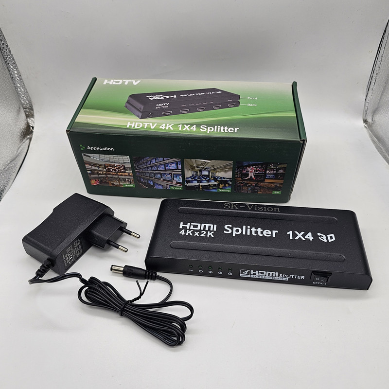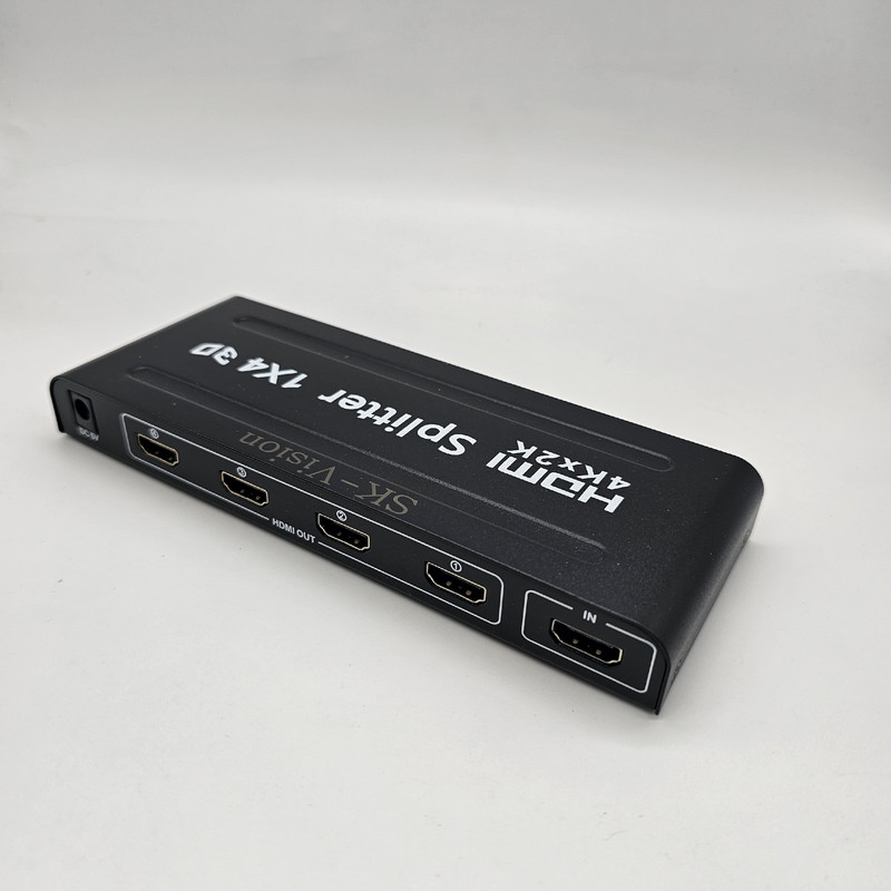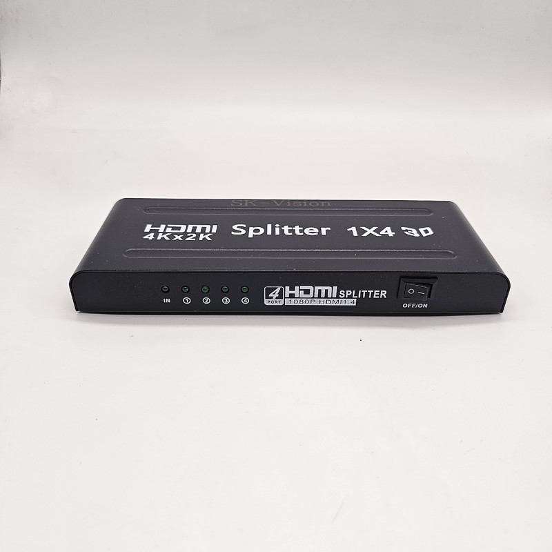 اسپلیتر HDMI چهار پورت اسکای ویژن مدل 4K 1x4 یک سیگنال ورودی HDMI را به چهار سیگنال خروجی HDMI یکسان با سیگنال ورودی تقسیم می کند، بدون اینکه کیفیت آن کاهش یابد. و میتوانید یک منبع ورودی مانند پخش کننده ویدیویی را بر روی 4 منبع تا 4 تلویزیون نمایش داده شود.سوئیچ 1×4 HDMI از رزولوشنهای بالا تا از جمله 480i/p، 576i/1080p، 720i/p، 1080i/p و 4Kx2K@30Hz Ultra HD 3840 x 2160 رزولوشن و 3D، رنگ عمیق 12bit، Blu5-ray پشتیبانی میکند. برای راه اندازی به راحتی و بدون نصب درایور یا نرم افزار نصب می شود.محفظه فلزی با کمک به جذب و دفع سریع گرما، دستگاه را خنک نگه می دارد. به همراه یک عدد آداپتور 5 ولت داخل جعبه .کیفیت 4k برند با کیفیت اسکای ویژن می باشد