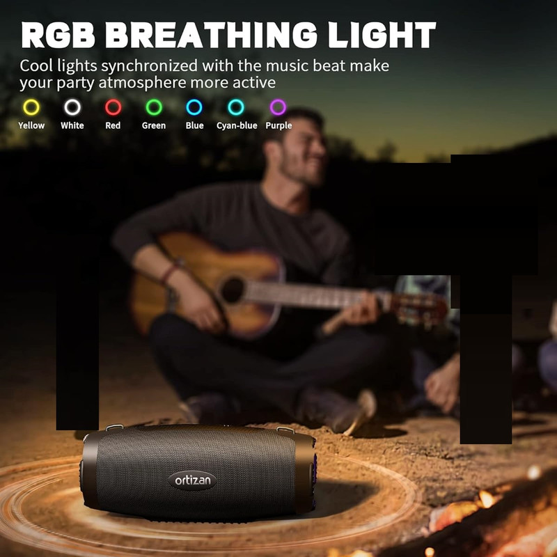 | توضیحات قابلیتهای مقاومتی | بلندگوی بلوتوث Ortizan 80W - صدای قدرتمند و باس عمیق، بیسیم قابل حمل، ضد آب IPX7، زمان پخش 12 ساعته، پاوربانک، EQ، USB، چراغهای LED - ساب ووفر بلند فضای باز Boombox برای مهمانی، کمپینگ بلوتوث نسخه ۵.۳ با برد حدود ۲۰ متر درگاه USB-A برای پخش موسیقی و شارژ دستگاههای دیگر (پاوربانک) ورودی AUX ۳.۵ میلیمتری برای اتصال مستقیم به موبایل یا لپتاپ درگاه کارت حافظه TF (microSD) میکروفون داخلی برای تماس صوتی |