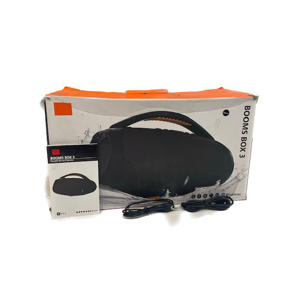 اسپیکر BOOMS BAX 3 یک اسپیکر بلوتوثی قابل حمل با کیفیت صدای خوب هست. این اسپیکر دارای طراحی جذاب و منحصر به فردی است که علاوه بر کیفیت صدای خوب ، قابلیت حمل آسان و نگهداری را هم فراهم میکند. با داشتن پورتهای مختلف شامل پورت microSD، پورت USB و پورت AUX، میتوانید بدون نیاز به بلوتوث، صدا را از دستگاه خود پخش کنید. همچنین با داشتن باتری داخلی ، میتوانید تا چند ساعت پخش مداوم داشته باشید. قابلیتهای دیگر این اسپیکر شامل دسترسی آسان به انواع پورتها و بلوتوث میباشد.