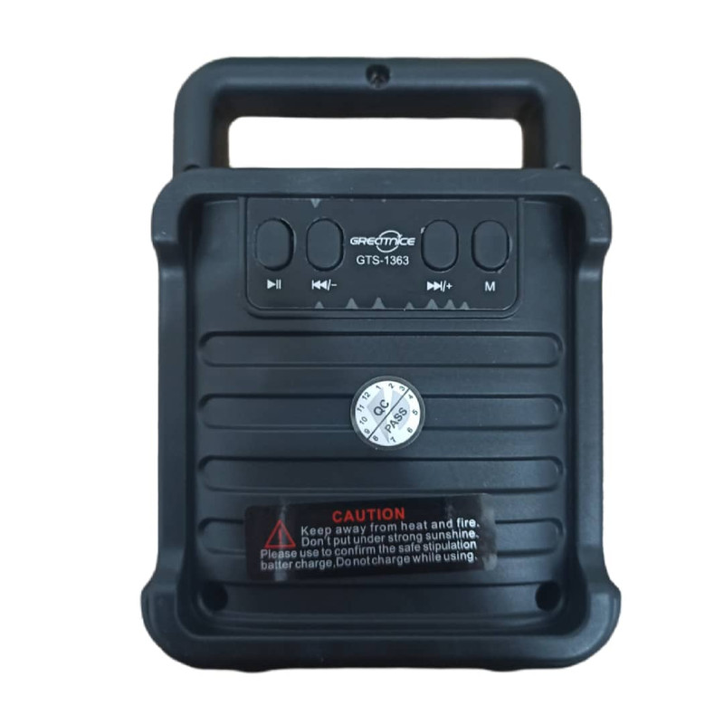 اسپیکر پرتابل GTS-1363 را می توان به شکل ایستاده به کار برد و علاوه بر بلوتوث با کارت حافظه و فلش مموری سازگاری دارد و همچنین وجود یک ساب 3 اینچی باعث شده است تا بتوانید از قدرت صدای شگفت انگیز بهره ببرید، ویژگی شگفت انگیز دیگر این اسپیکر، وجود یک رقص نوررنگی در هنگام پخش موزیک است. با توجه به سایز بسیار مناسب آن و قابلیت جایگیری در کوله پشتی و چمدان گزینه بسیار عالی برای مسافرت و کمپینگ و همچنین استفاده داخل خودرو و قطار و... میباشد. شارژ دهی مناسب و همچنین قابلیت استفاده به عنوان پاور بانک برای مواقع اضطراری و مزیتهای دیگر این اسپیکر مقرون به صرفه را به گزینه مناسبی در میان اسپیکر های مشابه تبدیل کرده است.