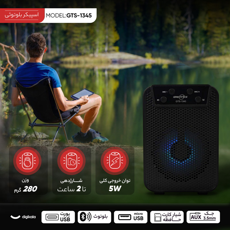 اسپیکر بلوتوثی گریت نایس مدل GTS-1345 یکی از گزینههای مقرونبهصرفه در بازار اسپیکرهای قابلحمل است که با طراحی جمعوجور و ویژگیهای کاربردی خود میتواند نیازهای مختلف کاربران را برآورده کند. این اسپیکر با ابعاد ۱۴۰×۹۰×۷۰ میلیمتر و وزن ۲۸۰ گرم بهراحتی قابلحمل است و برای استفاده در سفر، پیکنیک یا مکانهای مختلف بسیار مناسب است.