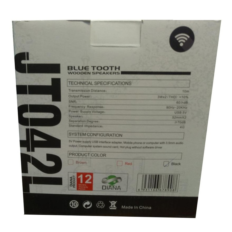 اسپیکر «JT042L» محصولی حرفهای از شرکت «دیانا» است که از طریق بلوتوث به تلفنهمراه متصل میشود و میتواند اطلاعات موسیقی را دریافت کند. این اسپیکر در گروه اسپیکرهای دسکتاپی قرار میگیرد و برای استفاده از آن نیاز است که به برق دسترسی داشته باشید. توان خروجی این اسپیکر برابر با 6 وات است که به یاری آن میتوان انتظار صدایی مناسب را از JT042L داشت.